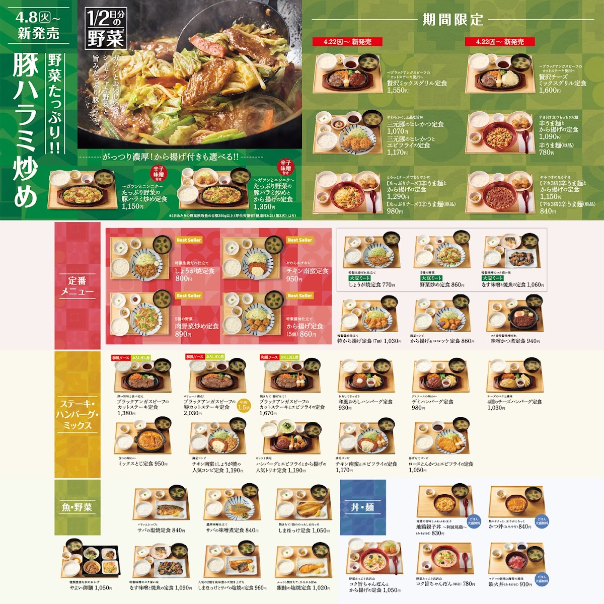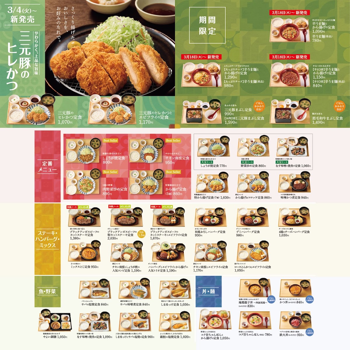 From a reviewer’s perspective, the menu at Yayoiken Hankyu Ibaraki keeps things simple but satisfying, with its bestseller しょうが焼定食 standing out as a reliable choice for anyone craving a classic Japanese set meal. The dish features tender stir-fried pork with ginger sauce served alongside rice, miso soup, and side dishes, making しょうが焼定食 a well-balanced and comforting option that reflects the restaurant’s focus on hearty, everyday Japanese cuisine. Overall, the menu may not be overly large, but it emphasizes quality and familiar flavors, and しょうが焼定食 in particular represents the kind of affordable, filling meal that makes this restaurant a convenient and dependable spot for both quick lunches and casual dinners.